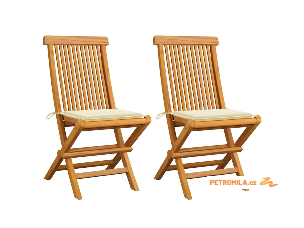 Zahradní židle s krémovými poduškami 2 ks masivní teak
