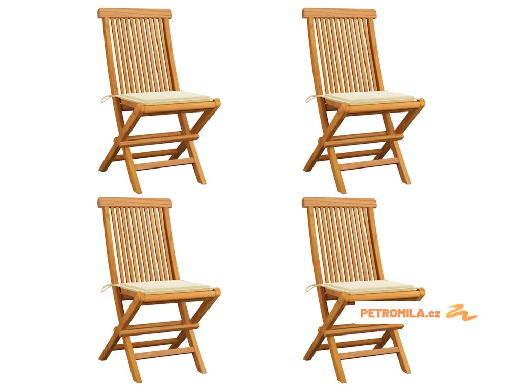 Zahradní židle s krémovými poduškami 4 ks masivní teak