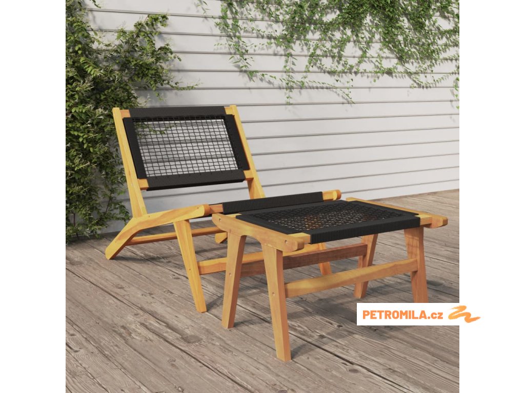 Zahradní židle s podnožkou masivní teakové dřevo a polyester