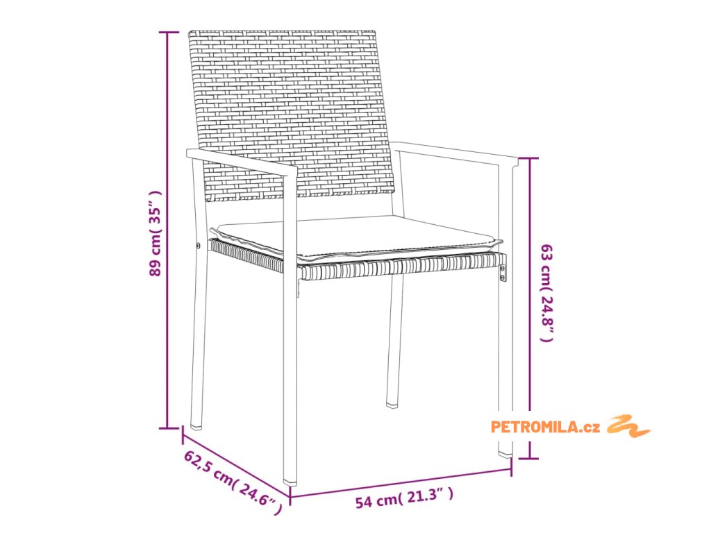 Zahradní židle s poduškami 2 ks černé 54x62,5x89 cm polyratan