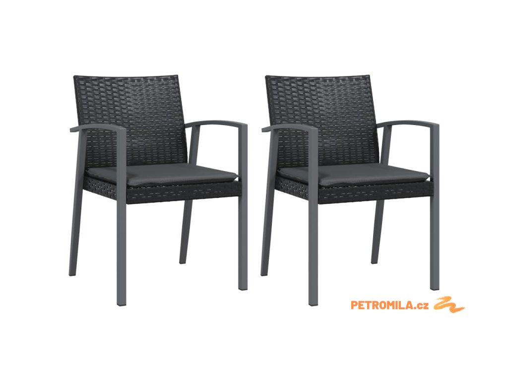 Zahradní židle s poduškami 2 ks černé 56,5x57x83 cm polyratan