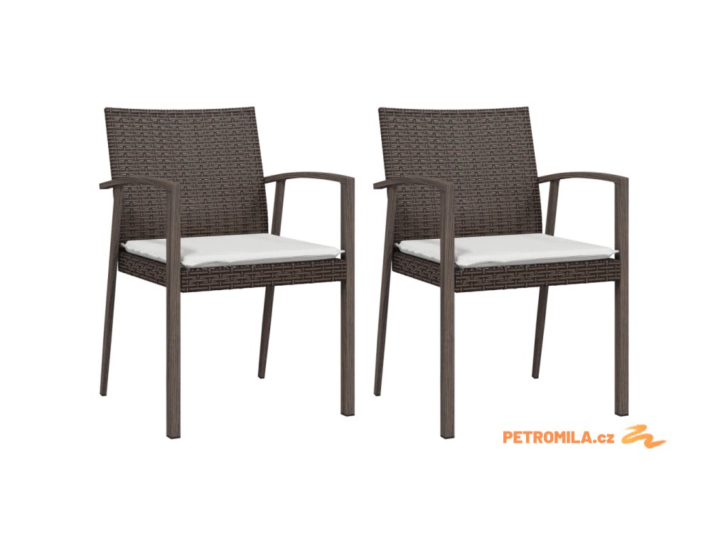 Zahradní židle s poduškami 2 ks hnědé 56,5x57x83 cm polyratan
