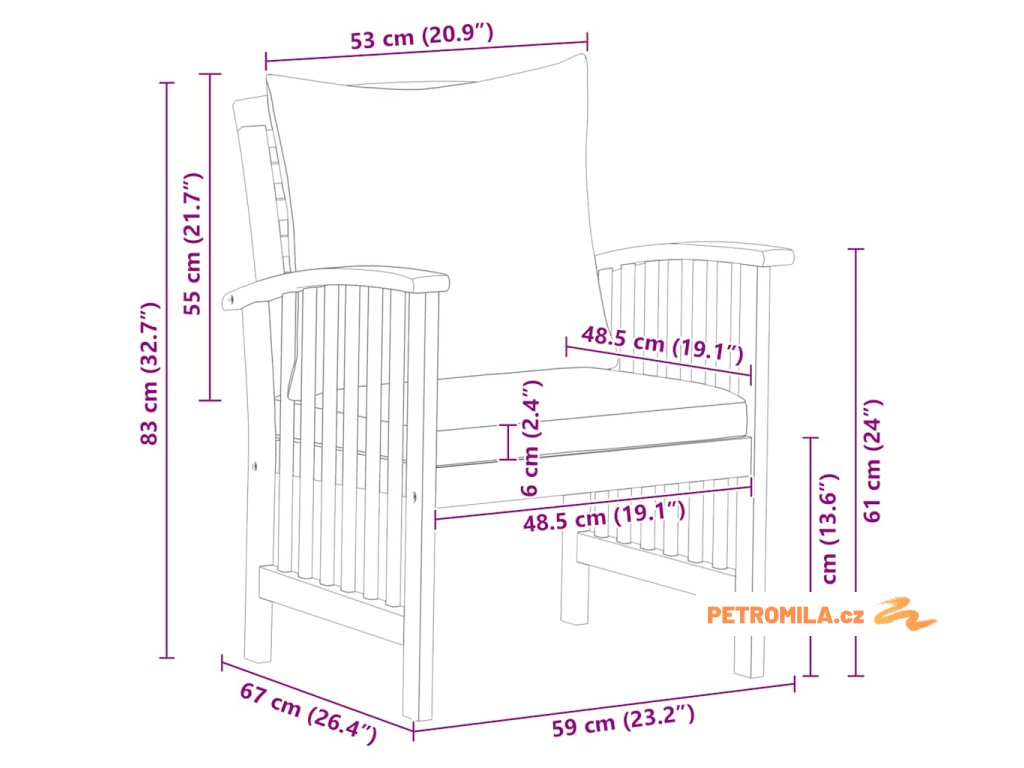 Zahradní křeslo je vyrobené z masivního akáciového dřeva s olejovým povrchem, je stabilní a má dlouhou životnost. Řemeslné zpracování a krásná kresba dřeva dává každému kusu nábytku jeho charakteristický a neopakovatelný vzhled. Podušky na sedáku a polštář za záda přispívá k pohodlnému posezení.