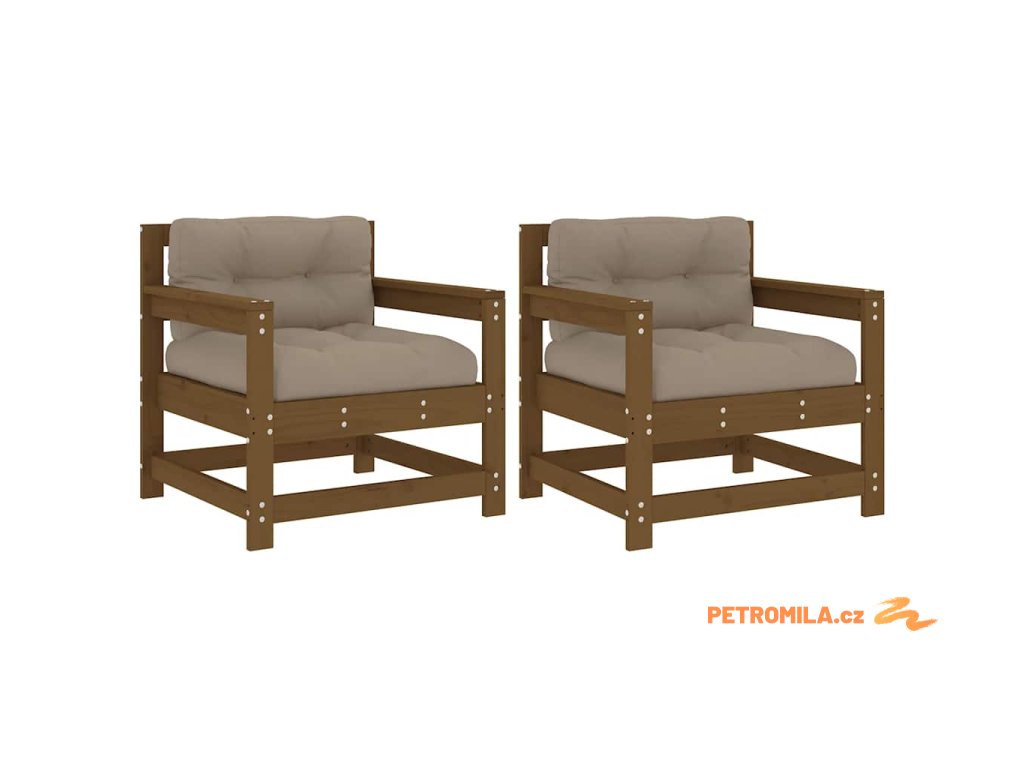 Zahradní židle s poduškami 2 ks medově hnědé masivní borovice
