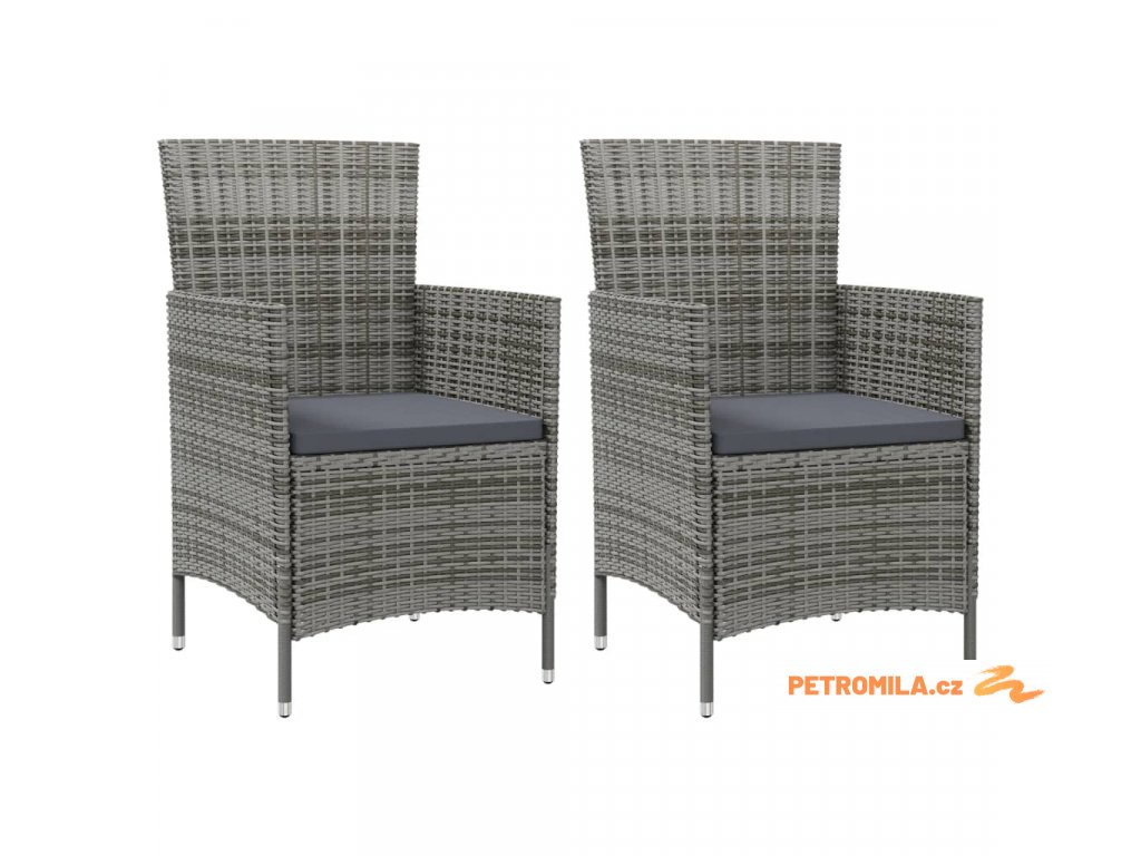 Zahradní židle s poduškami 2 ks polyratan šedé