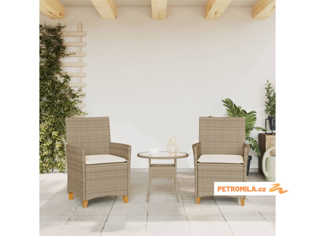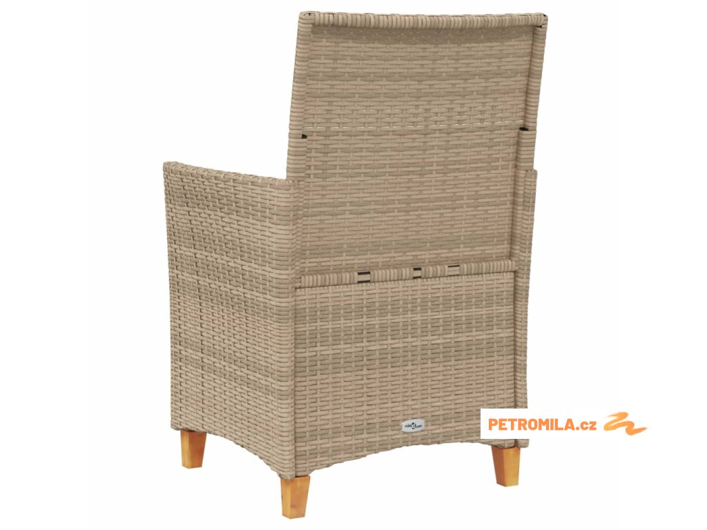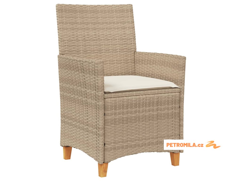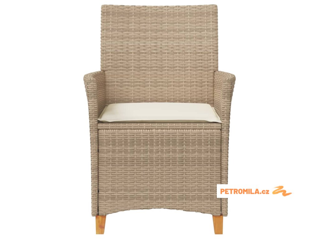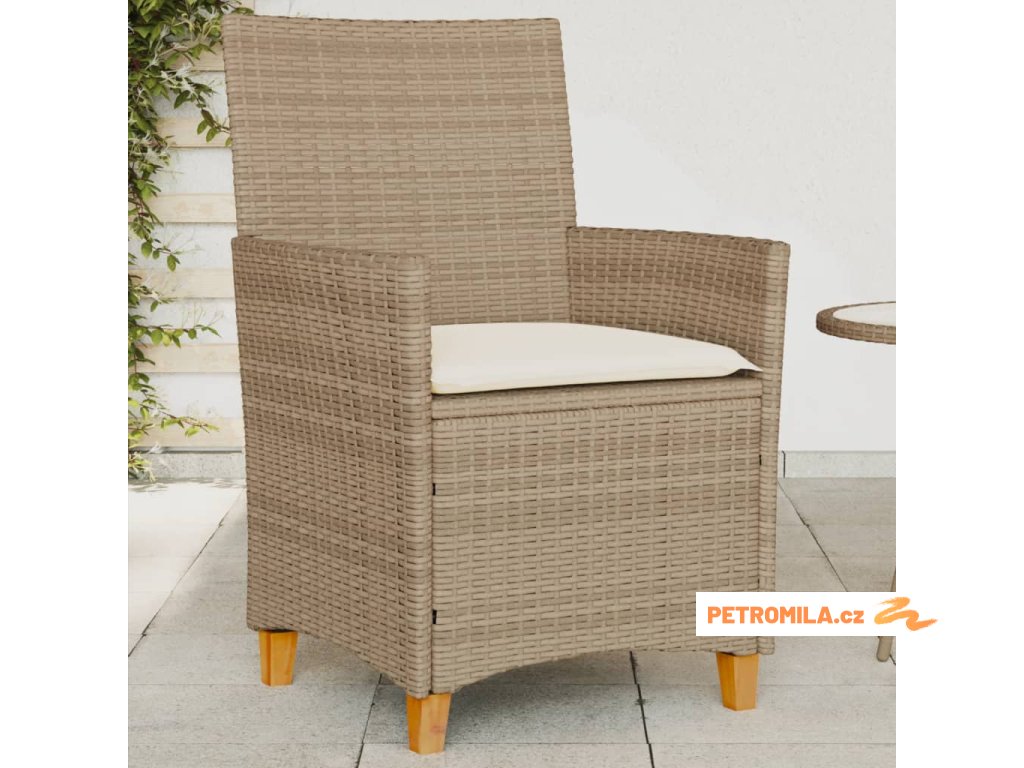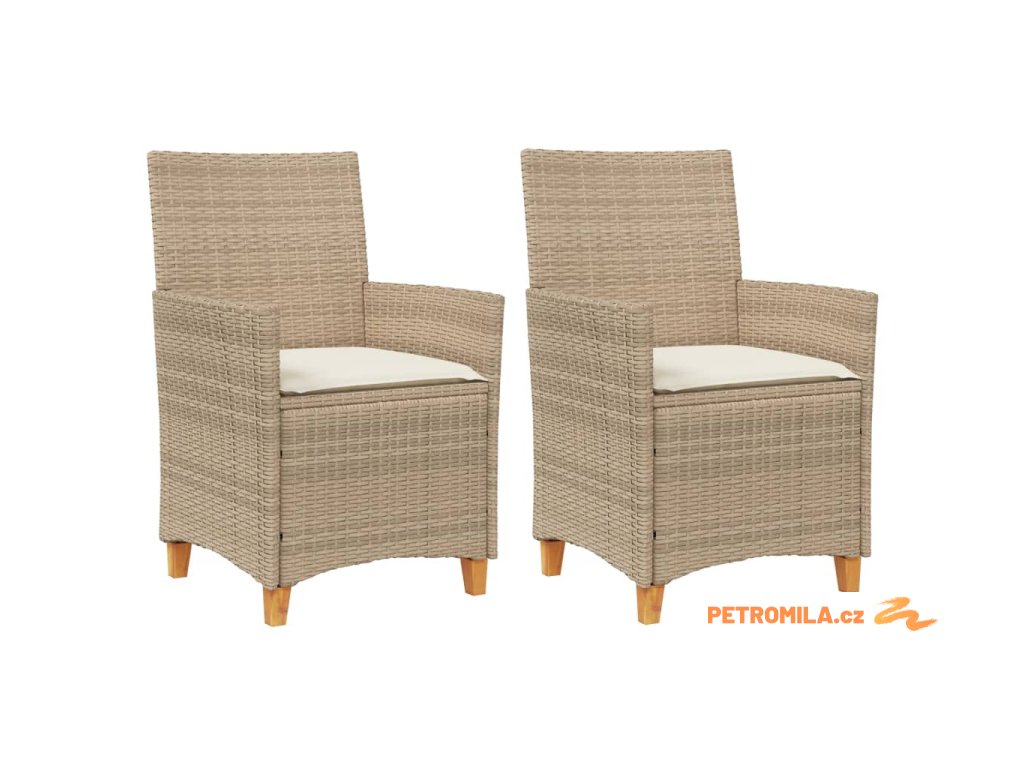 Zahradní židle s poduškami 2ks béžové polyratan a masivní dřevo
