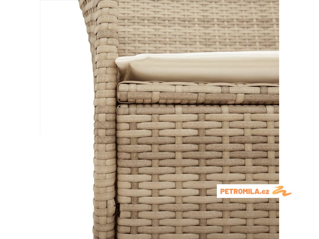 - Odolný materiál: PE ratan neboli polyratan je pevný syntetický materiál s nízkými nároky na údržbu, který vypadá jako přírodní ratan. Je lehký, snadno se čistí a běžně se používá pro venkovní nábytek díky své dlouhé životnosti a odolnosti vůči povětrnostním vlivům.
