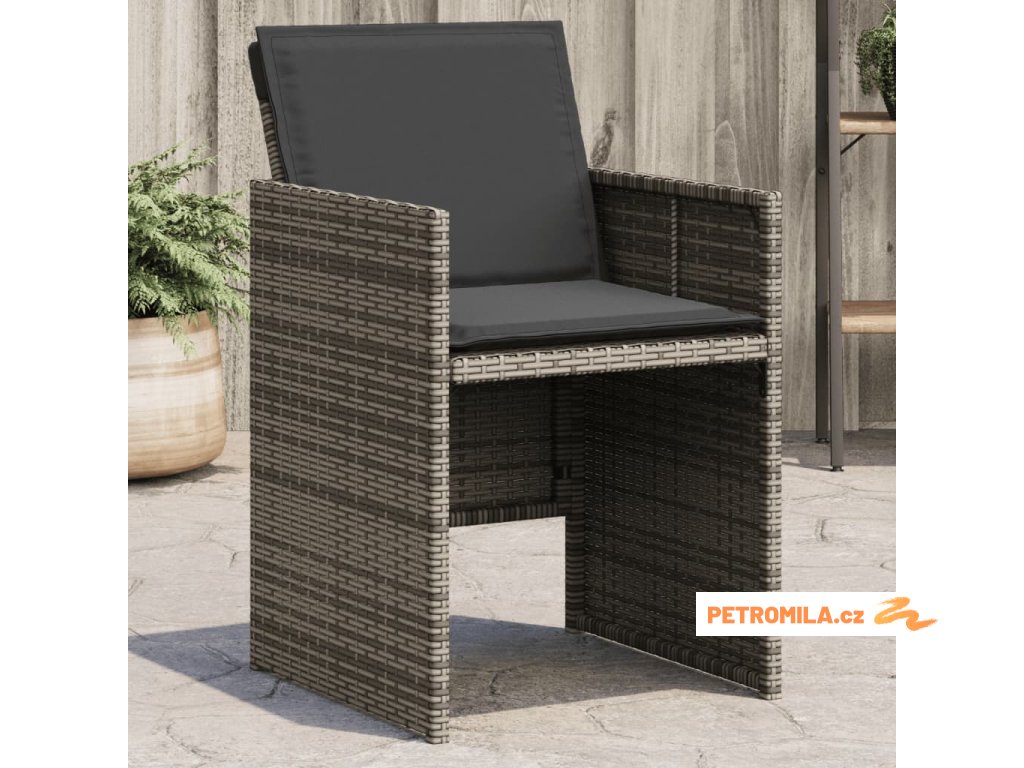 Zahradní židle s poduškami 4 ks polyratan šedé
