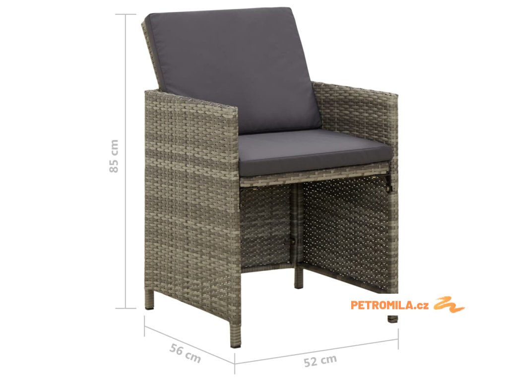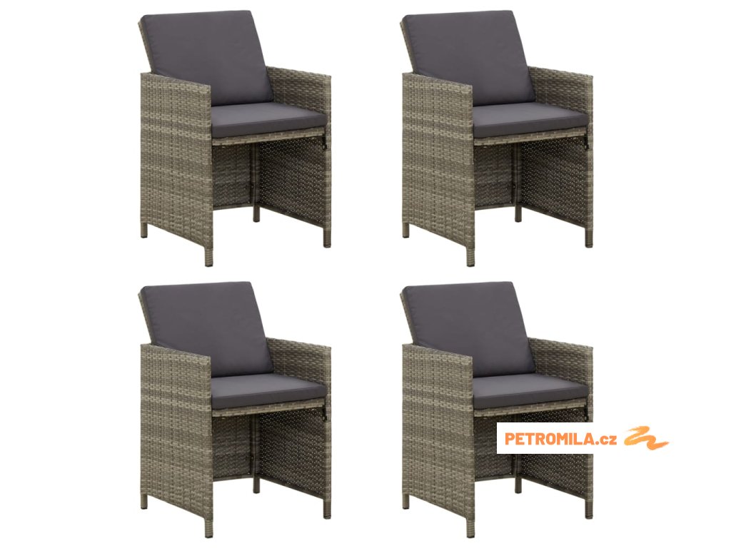 Zahradní židle s poduškami 4 ks polyratan šedé