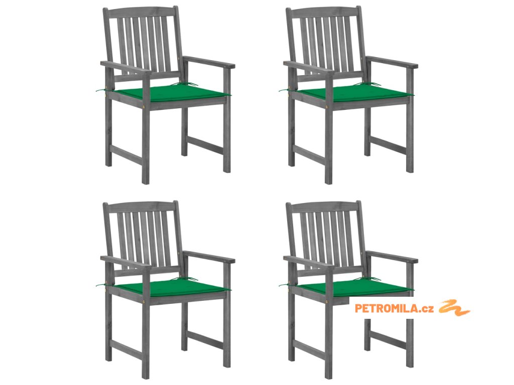 Zahradní židle s poduškami 4 ks šedé masivní akáciové dřevo