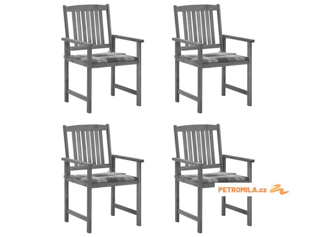 Zahradní židle s poduškami 4 ks šedé masivní akáciové dřevo