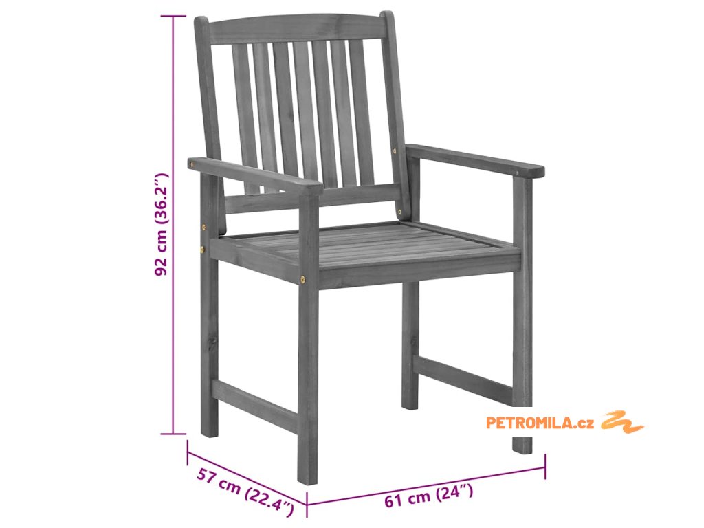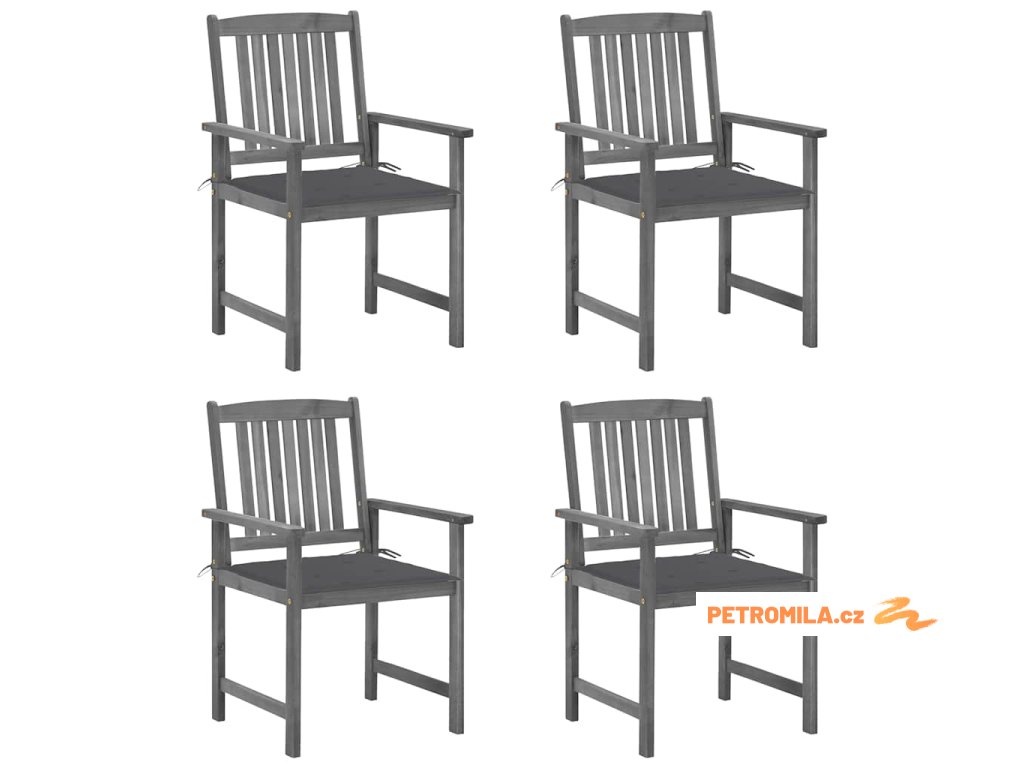 Zahradní židle s poduškami 4 ks šedé masivní akáciové dřevo