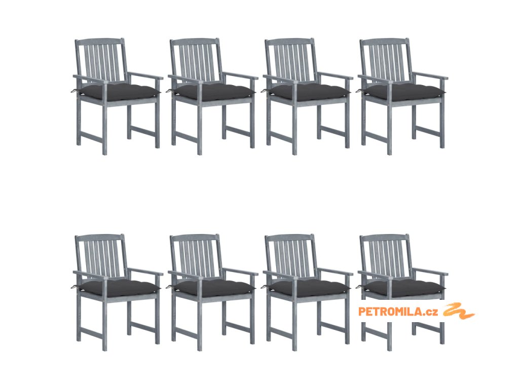 Zahradní židle s poduškami 8 ks masivní akáciové dřevo šedé