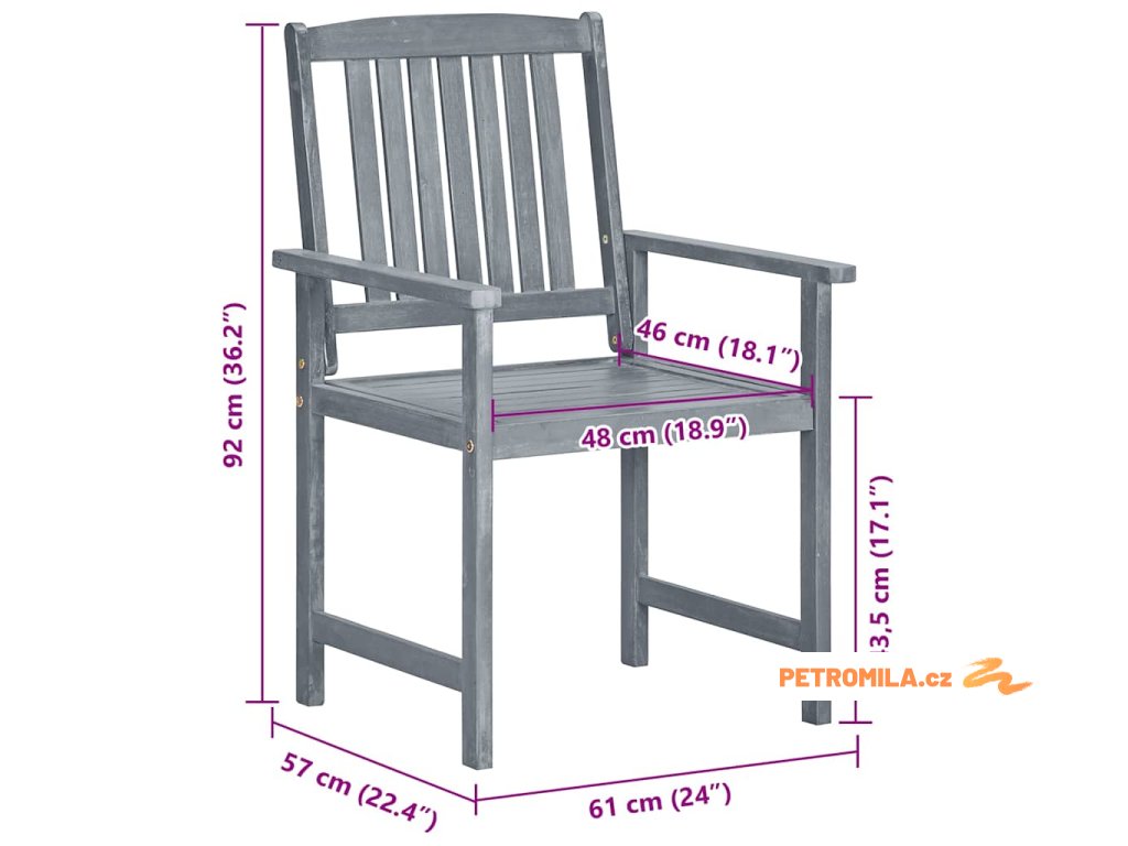 Zahradní židle jsou vyrobené z masivní akácie s povrchem zesvětleným do šeda. Jedná se o tvrdé dřevo s hustou kresbou. Masivní akáciové dřevo se vyznačuje schopností unést i velkou váhu a zároveň skvěle odolává opotřebení a působení času. Sada dřevěných židlí je stabilní, hodně toho vydrží a nepodléhá klimatickým vlivům. Jejich povrch se navíc snadno čistí navlhčeným hadříkem. Přiložené podušky vám zajistí maximální pohodlí.