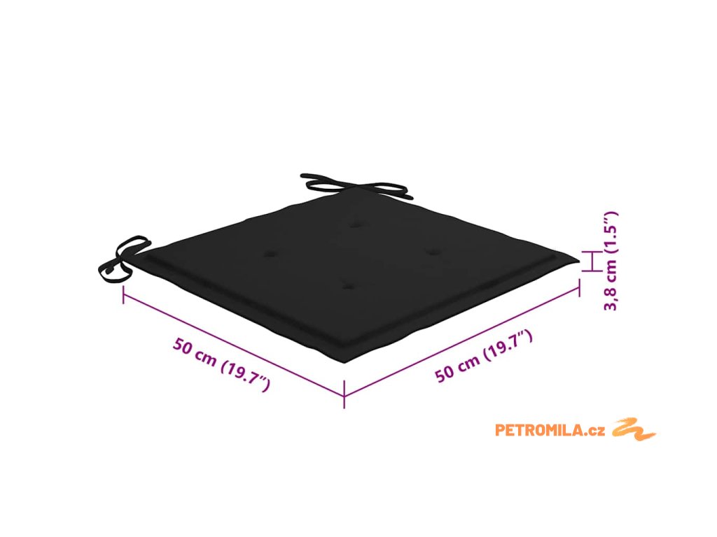 - Rozměry podušky: 50 x 50 x 4 cm (D x Š x T)