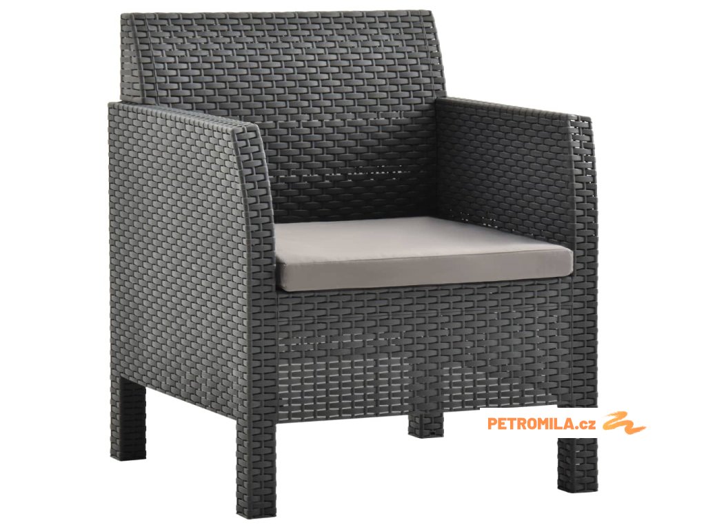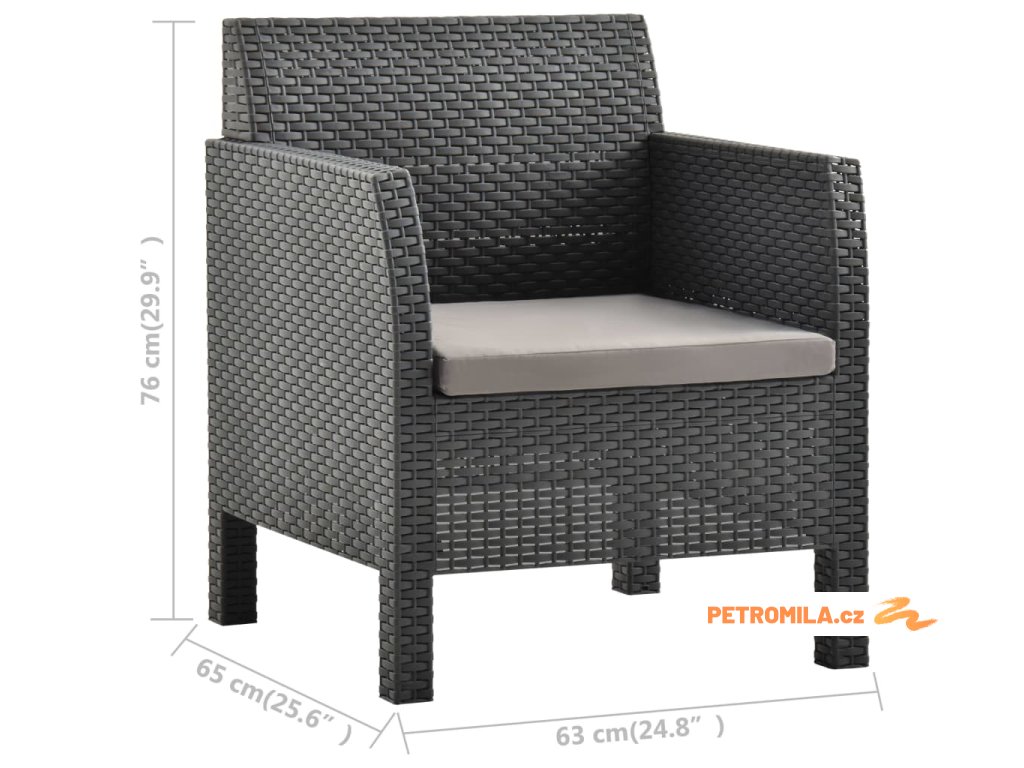 Zahradní židle s polštářem antracitová 63 x 65 x 76 cm PP ratan