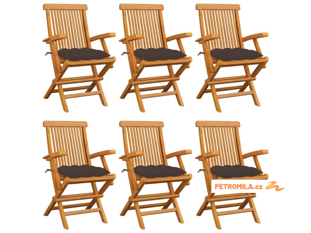 Zahradní židle s šedohnědými poduškami 6 ks masivní teak
