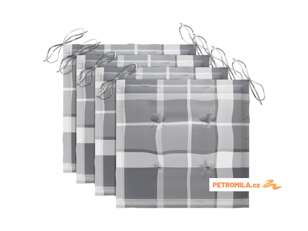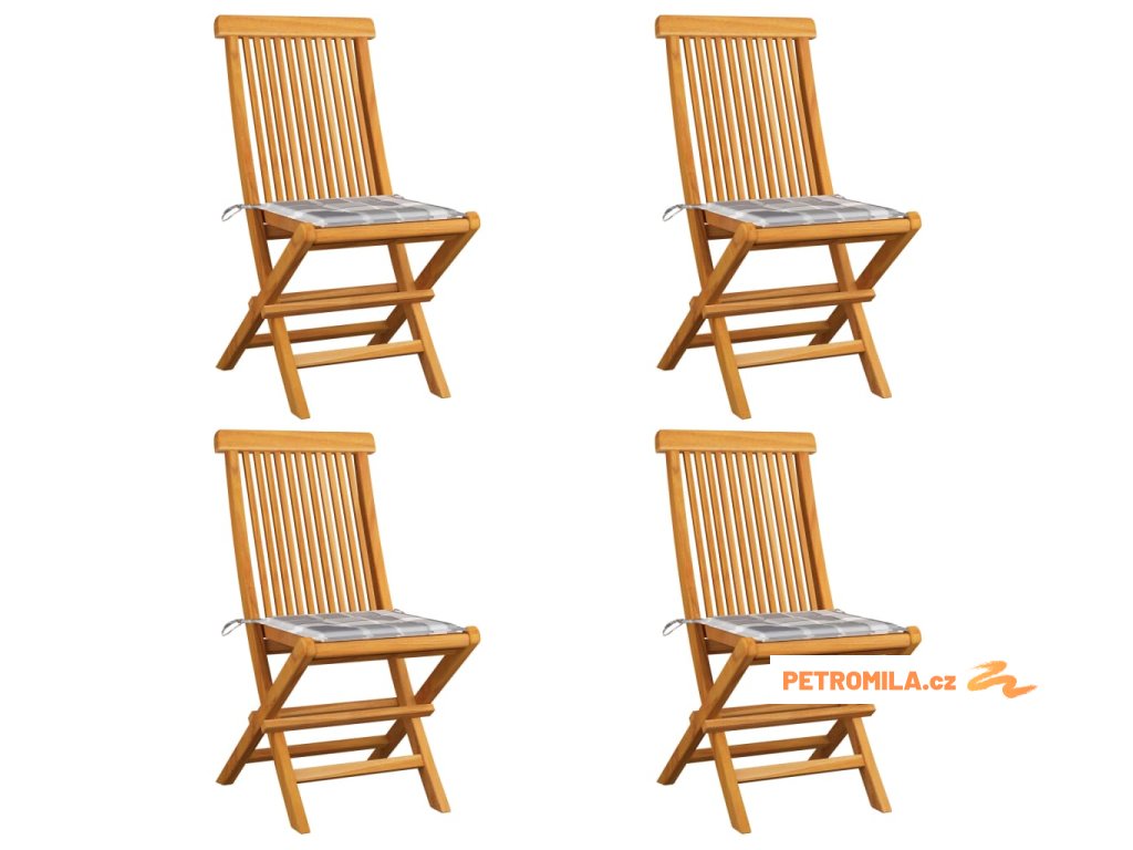 Zahradní židle s šedými károvanými poduškami 4 ks masivní teak