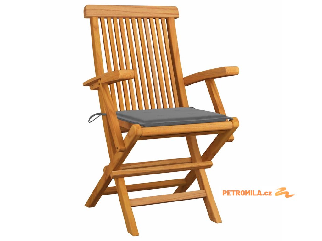 Zahradní židle s šedými poduškami 4 ks masivní teak