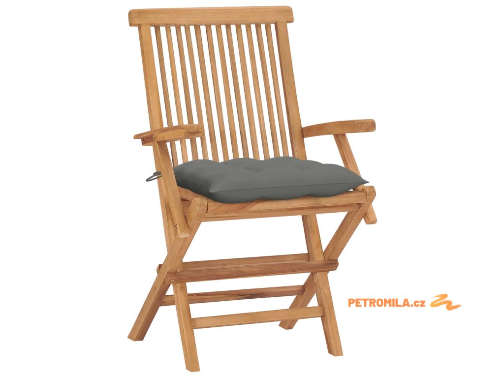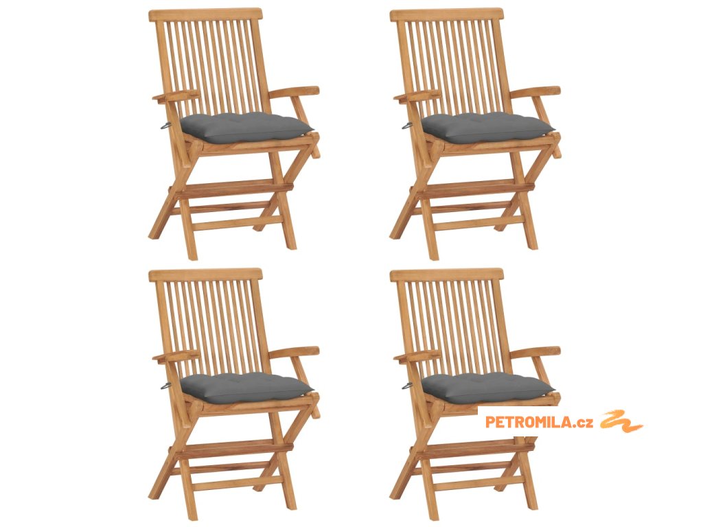 Zahradní židle s šedými poduškami 4 ks masivní teak