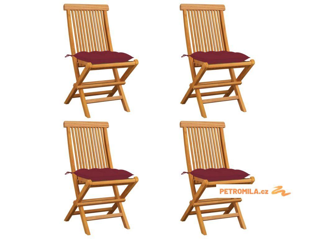 Zahradní židle s vínovými poduškami 4 ks masivní teak