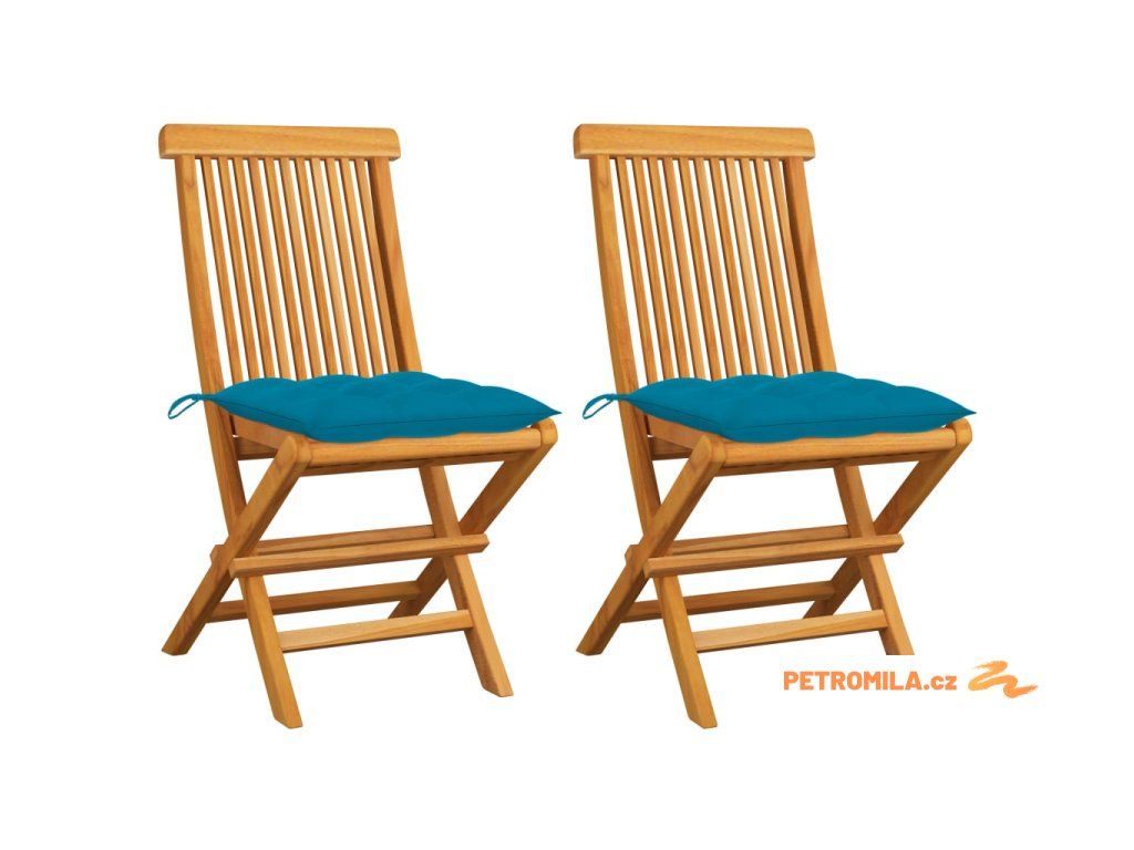 Zahradní židle se světle modrými poduškami 2 ks masivní teak