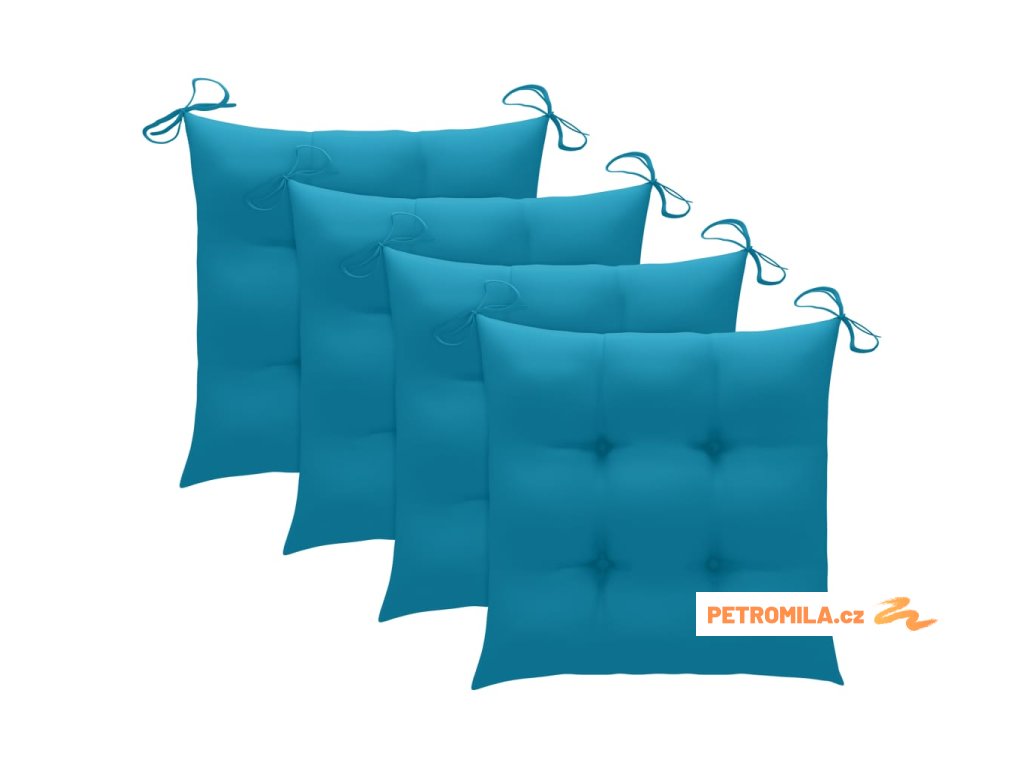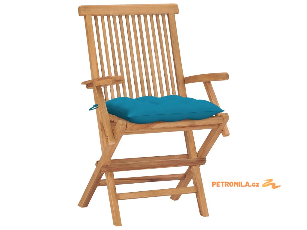 Zahradní židle se světle modrými poduškami 4 ks masivní teak