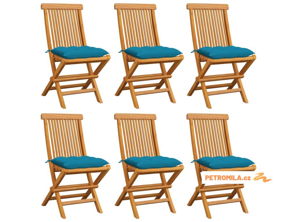 Zahradní židle se světle modrými poduškami 6 ks masivní teak
