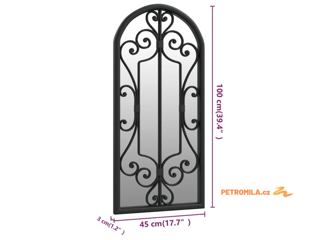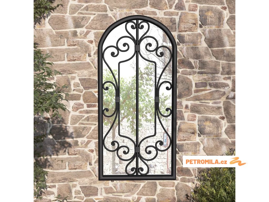 Zahradní zrcadlo černé 100 x 45 cm železo do exteriéru