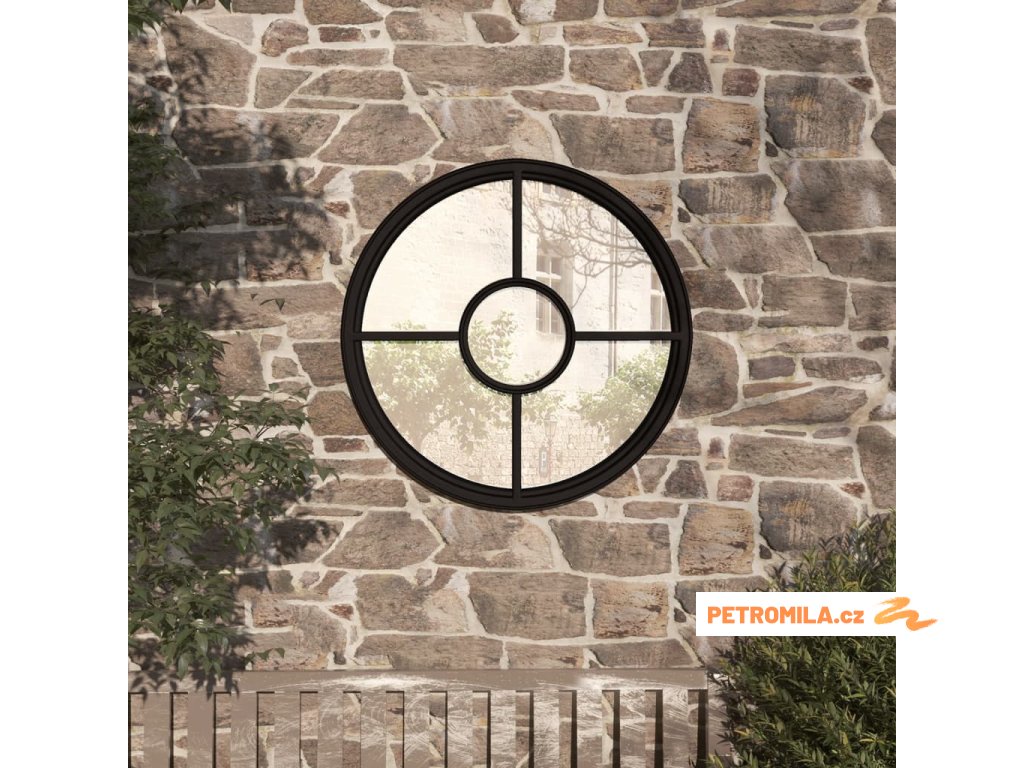 Zahradní zrcadlo černé 40 x 4 cm železo kulaté do exteriéru