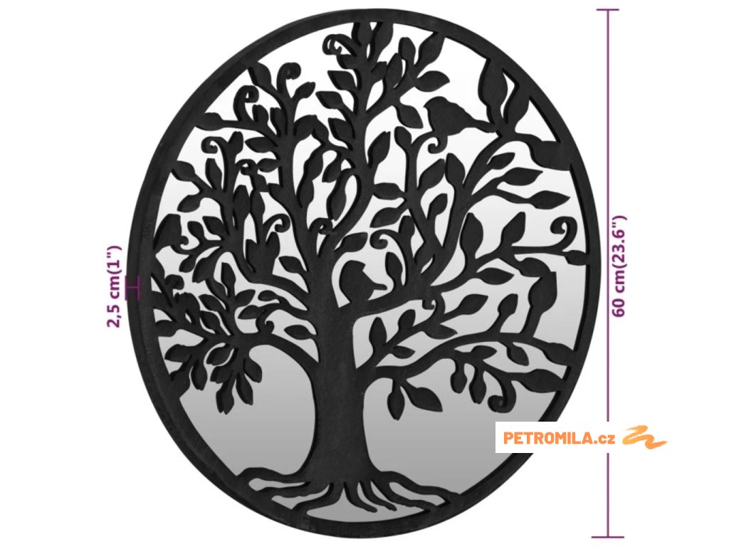 Rám zrcadla je vyroben ze železa, takže je odolné a stabilní. Se svým dekorativním designem stromu se skvěle hodí pro venkovní použití. Lze jej použít ke zvýraznění zahradního prvku jeho odrazem v zrcadle nebo k odklonu světla do tmavého rohu. Umístění zrcadla v zahradě je kreativní způsob, jak povznést její vzhled a opticky jí zvětšit. Pomocí předvrtaného otvoru v jeho horní části lze dekorativní zrcadlo snadno připevnit na zeď.