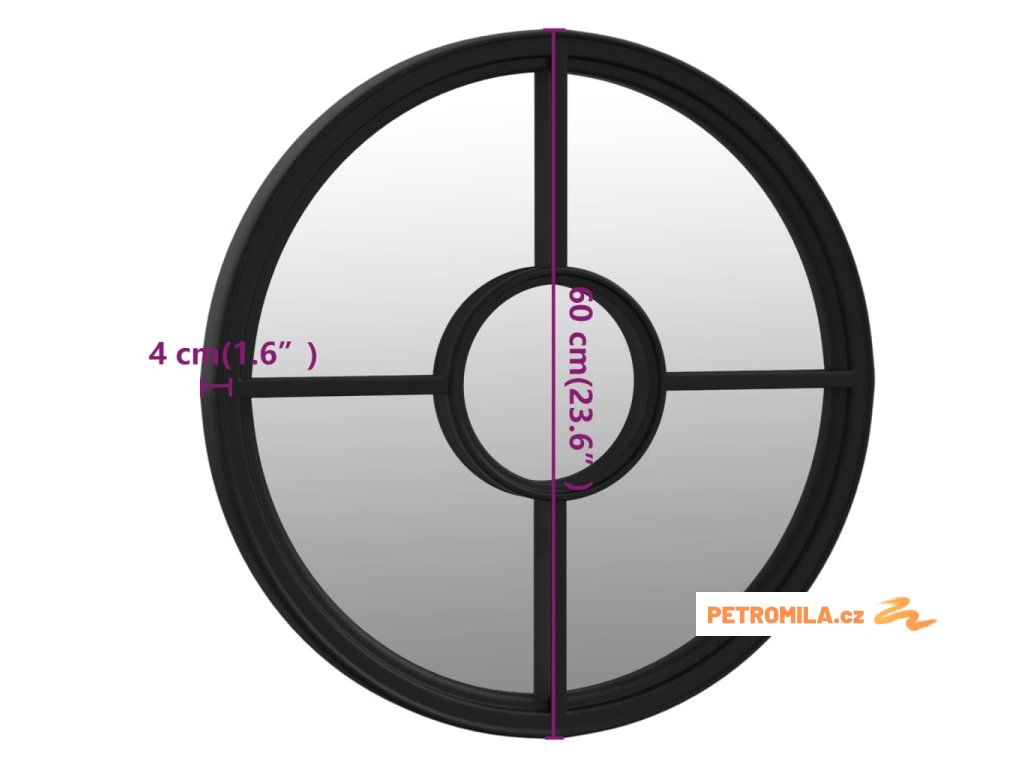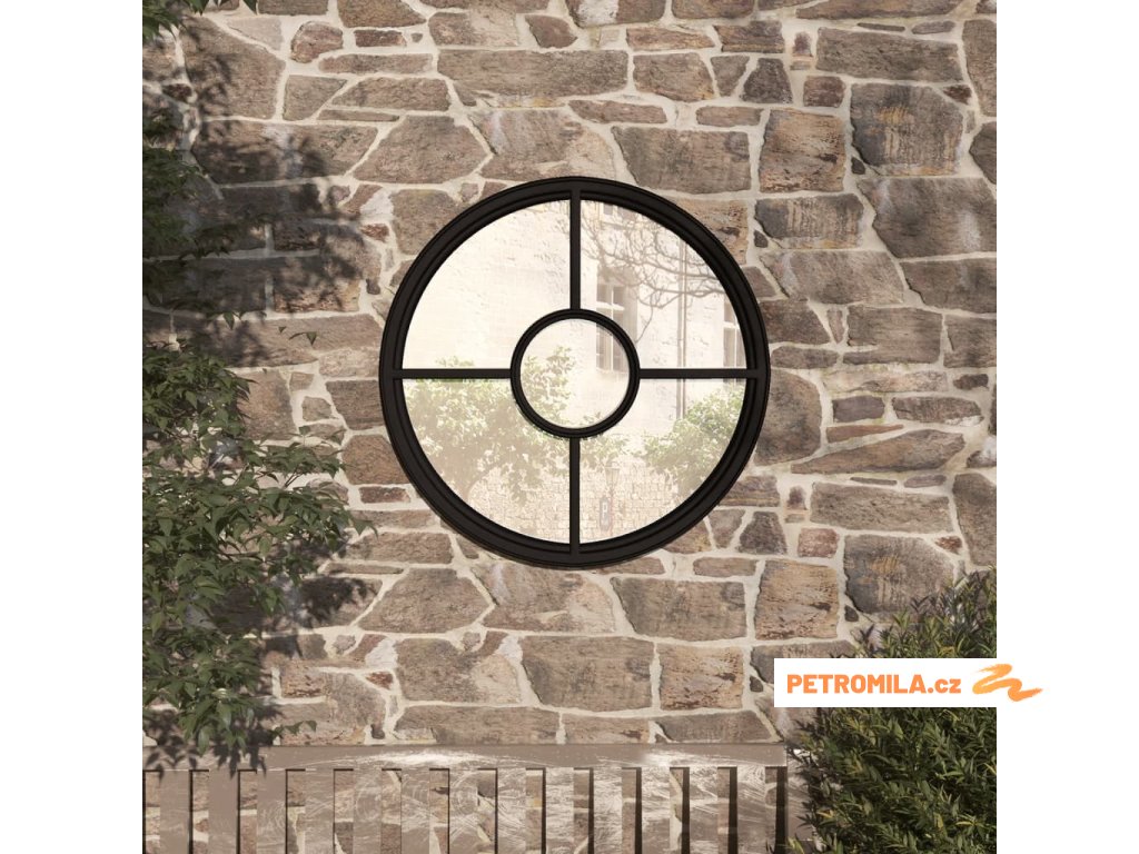 Zahradní zrcadlo černé 60 x 4 cm železo kulaté do exteriéru