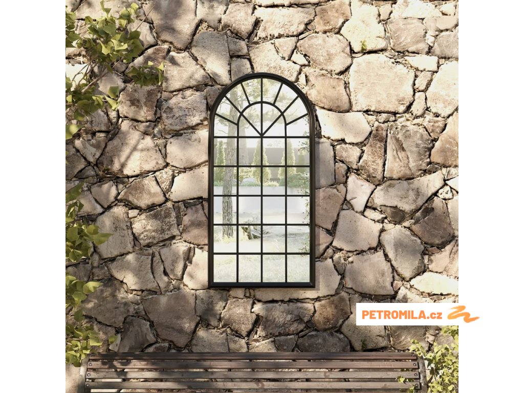 Zahradní zrcadlo černé 90 x 45 cm železo do exteriéru