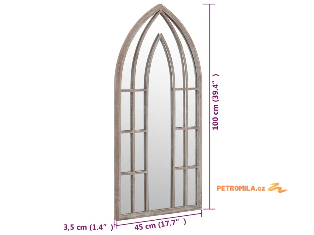 Zrcadlo je vyrobeno z odolného železa s efektem rzi, což mu dodává starožitný vzhled. Lze jej použít ke zvýraznění zahradní dekorace jejím odrazem v zrcadle nebo k odklonu světla do tmavého koutu. Umístění zrcadla na zahradě je kreativní způsob, jak oživit její vzhled a opticky zahradu zvětšit. Pomocí předvrtaného otvoru v horní části se dá dekorativní zrcadlo snadno připevnit na zeď.