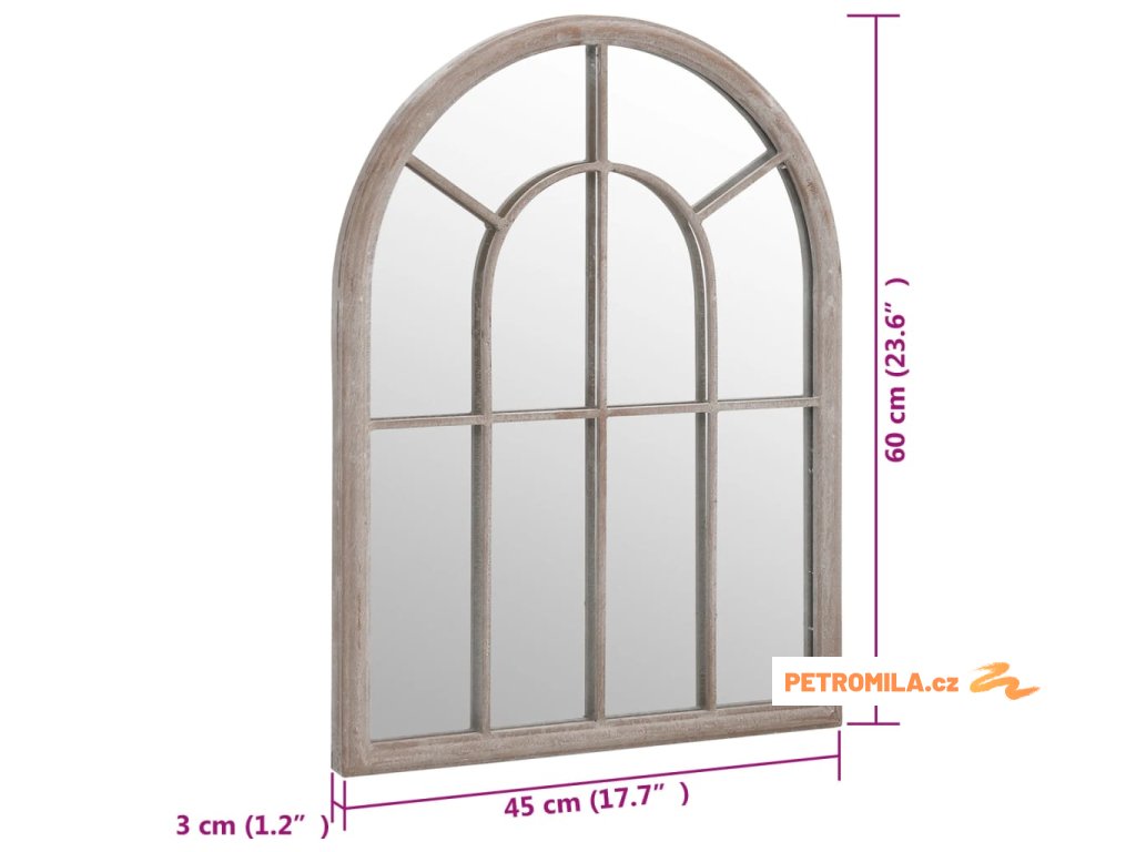 Zrcadlo je vyrobeno z odolného železa s efektem rzi, což mu dodává starožitný vzhled. Lze jej použít ke zvýraznění zahradní dekorace jejím odrazem v zrcadle nebo k odklonu světla do tmavého koutu. Umístění zrcadla na zahradě je kreativní způsob, jak oživit její vzhled a opticky zahradu zvětšit. Pomocí předvrtaného otvoru v horní části se dá dekorativní zrcadlo snadno připevnit na zeď.