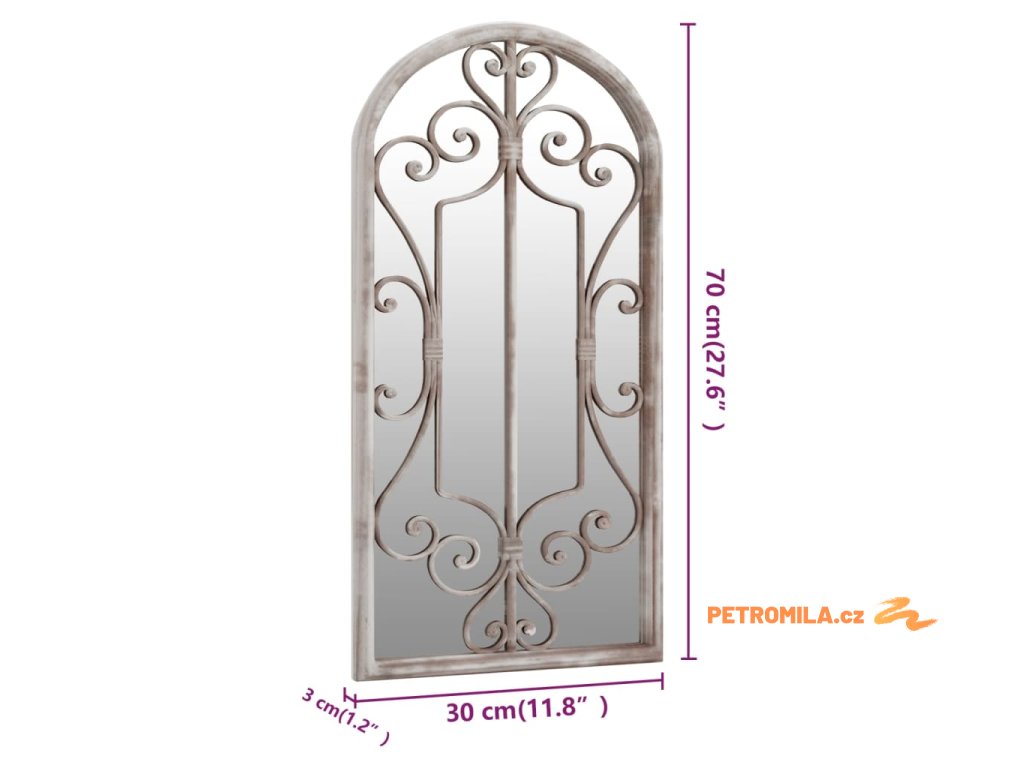 Zrcadlo je vyrobeno z odolného železa s efektem rzi, což mu dodává starožitný vzhled. Lze jej použít ke zvýraznění zahradní dekorace jejím odrazem v zrcadle nebo k odklonu světla do tmavého koutu. Umístění zrcadla na zahradě je kreativní způsob, jak oživit její vzhled a opticky zahradu zvětšit. Pomocí předvrtaného otvoru v horní části se dá dekorativní zrcadlo snadno připevnit na zeď.