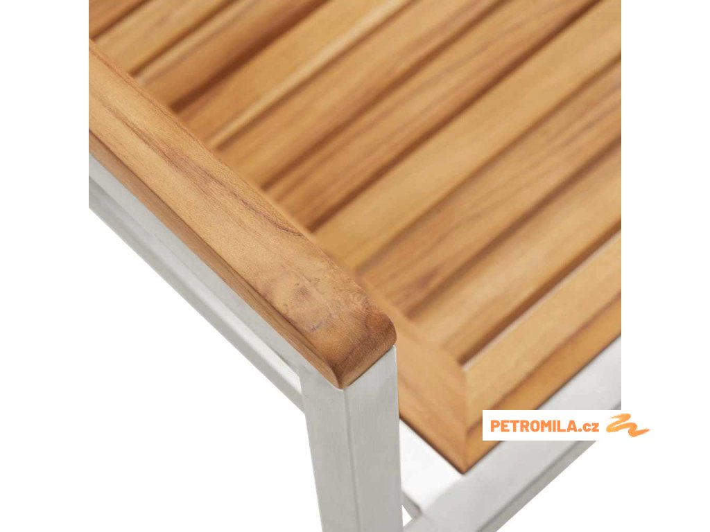 - Elegantní dřevěný povrch: Dřevěná deska stolu dodává přírodní vzhled a skvěle ladí s ocelovým rámem. Je navržena tak, aby měla dobrý odtok, což usnadňuje údržbu a skvěle vypadá na vašem venkovním prostoru.