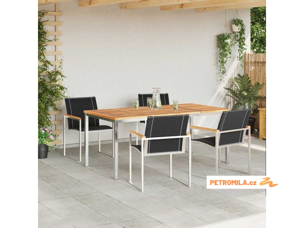 - Materiály: Tento zahradní jídelní set spojuje silný ocelový rám s dřevěným stolem, což zajišťuje trvanlivost a přírodní hezký vzhled. Nerezová ocel mu dodává dlouhou životnost a odolává počasí, takže je fakt skvělou volbou pro vaši zahradu.