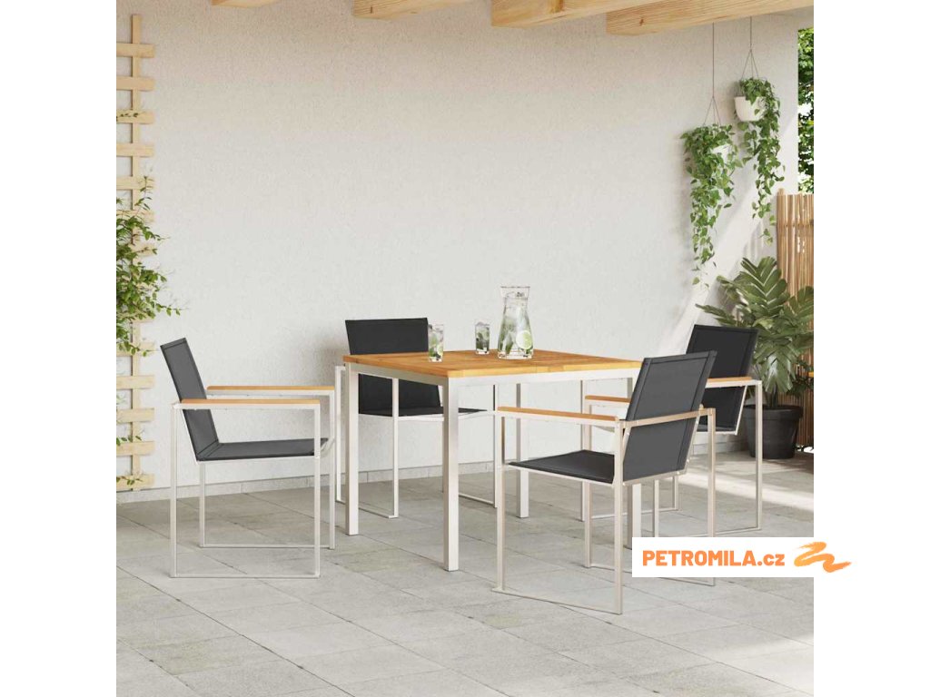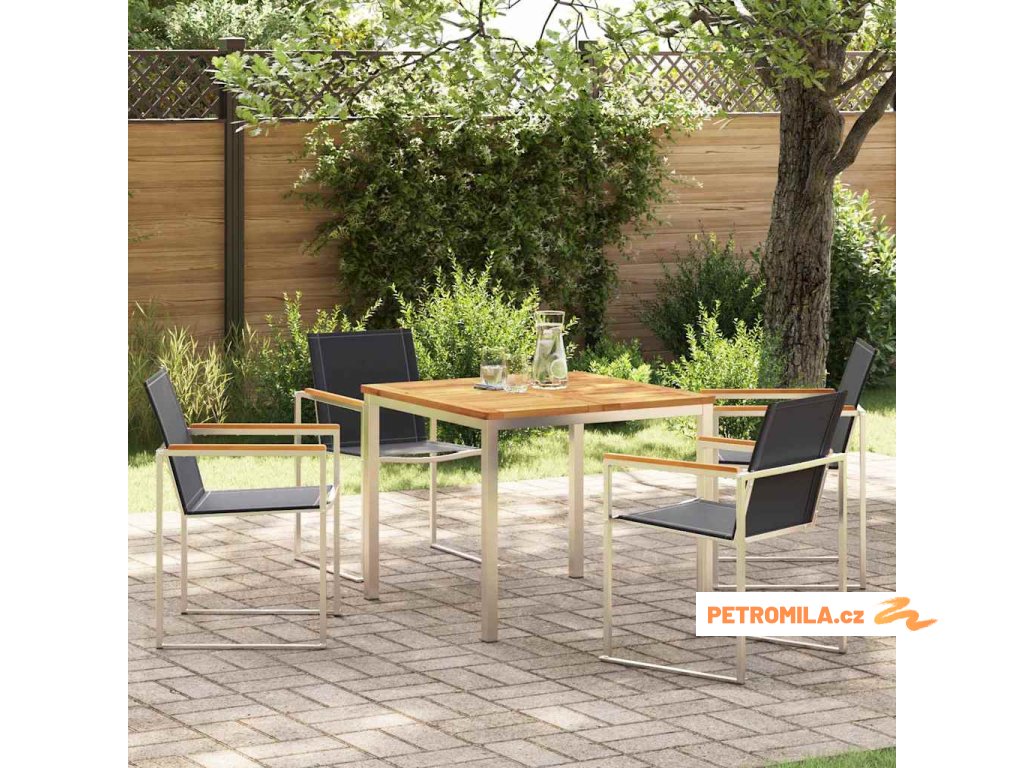 - Materiály: Tento zahradní jídelní set spojuje silný ocelový rám s dřevěným stolem, což zajišťuje trvanlivost a přírodní hezký vzhled. Nerezová ocel mu dodává dlouhou životnost a odolává počasí, takže je fakt skvělou volbou pro vaši zahradu.