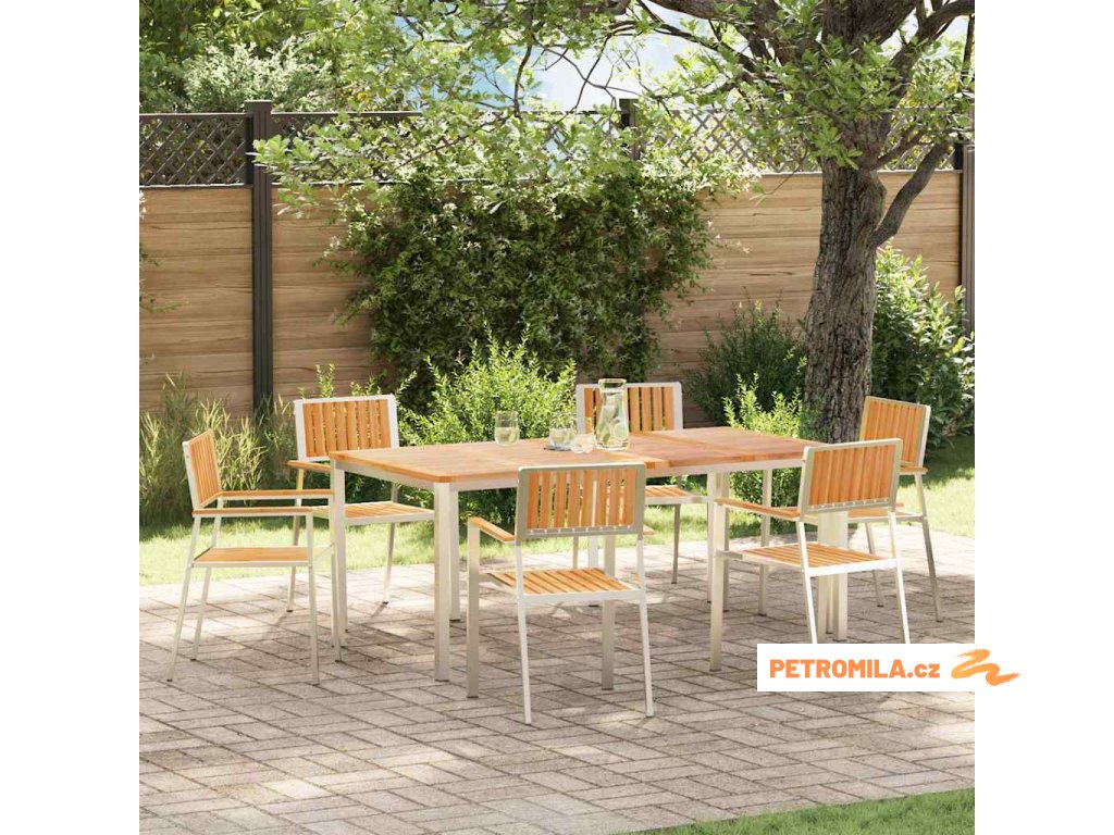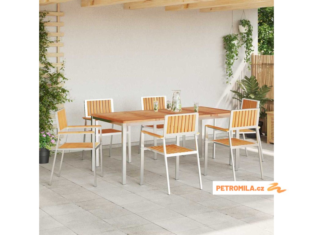 Konstrukce z nerezové oceli Tento set je vyroben z odolné nerezové oceli, která mu dodává stabilitu na venkově. Silný materiál je nejen poutavý, ale také odolný vůči povětrnostním vlivům, takže zůstává v super stavu i po letech. Pohodlný design Jídelní set má pohodlné opěrky na ruce a záda v hnědé barvě, navržené pro optimální komfort. Přidávají moderní styl a stříbrné nohy mu dávají trendy vzhled. Funkční vlastnosti Ideální pro jaro a léto, set je vyroben z odolných materiálů, které zůstávají atraktivní i při častém používání. Je perfektní pro zahrady a terasy, spolehlivě funguje venku a zároveň se drží stylu. Venkovní všestrannost Tento design vyhovuje všem potřebám vaší zahrady nebo terasy. Perfect pro sezónní použití, dobře snáší různorodé počasí, což znamená, že se přizpůsobí každé příležitosti. Snadná údržba Držte svůj jídelní set v super stavu použitím krytu, když ho nepoužíváte. Stačí ho otřít vlhkým hadříkem a postarat se, aby zůstal hezký a ať vydrží špatné počasí.- Barva: Hnědá