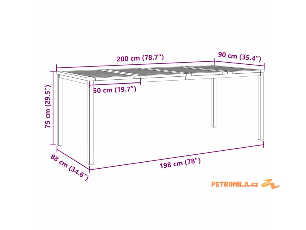 - Celkové rozměry: 200 x 90 x 75 cm (D x Š x V)