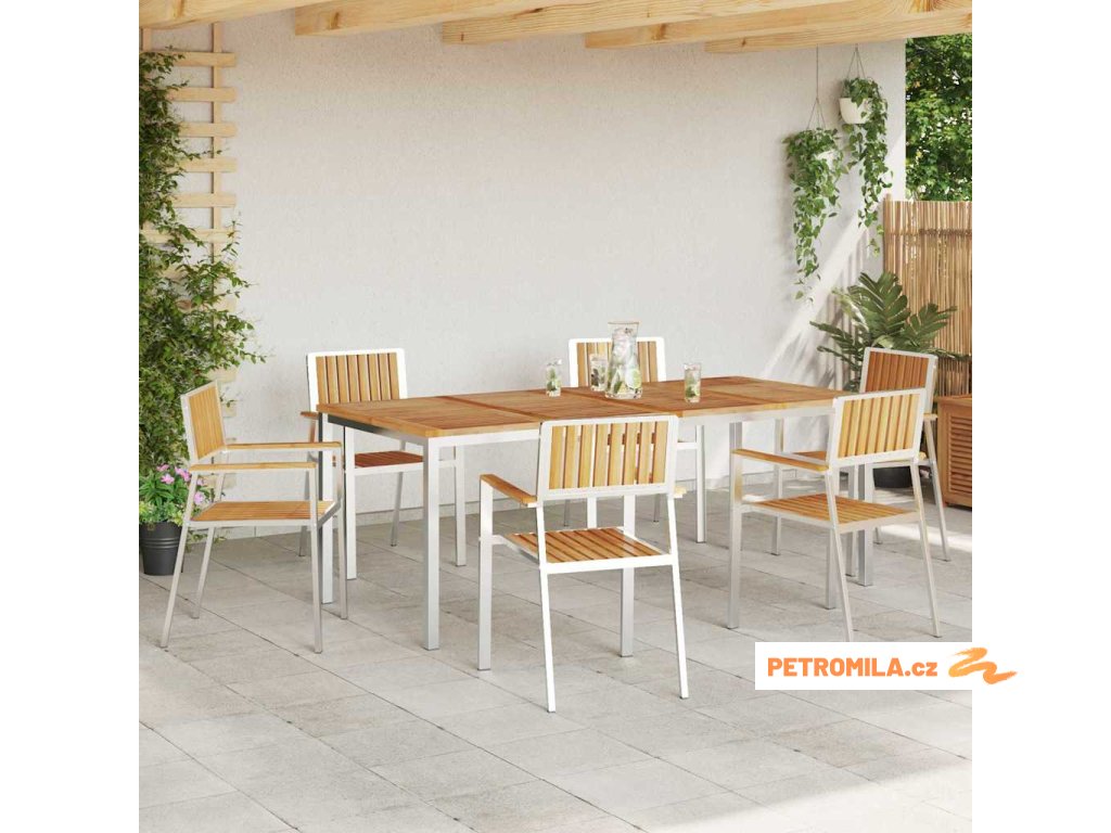 Konstrukce z nerezové oceli Tento set je vyroben z odolné nerezové oceli, která mu dodává stabilitu na venkově. Silný materiál je nejen poutavý, ale také odolný vůči povětrnostním vlivům, takže zůstává v super stavu i po letech. Pohodlný design Jídelní set má pohodlné opěrky na ruce a záda v hnědé barvě, navržené pro optimální komfort. Přidávají moderní styl a stříbrné nohy mu dávají trendy vzhled. Funkční vlastnosti Ideální pro jaro a léto, set je vyroben z odolných materiálů, které zůstávají atraktivní i při častém používání. Je perfektní pro zahrady a terasy, spolehlivě funguje venku a zároveň se drží stylu. Venkovní všestrannost Tento design vyhovuje všem potřebám vaší zahrady nebo terasy. Perfect pro sezónní použití, dobře snáší různorodé počasí, což znamená, že se přizpůsobí každé příležitosti. Snadná údržba Držte svůj jídelní set v super stavu použitím krytu, když ho nepoužíváte. Stačí ho otřít vlhkým hadříkem a postarat se, aby zůstal hezký a ať vydrží špatné počasí.- Barva: Hnědá