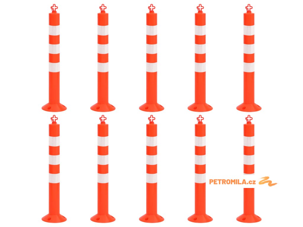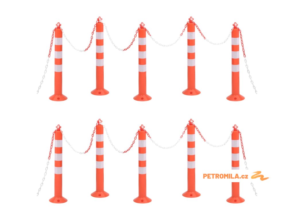 Zahrazovací sloupky k řízení dopravy 10 ks s řetězem 75 cm PE