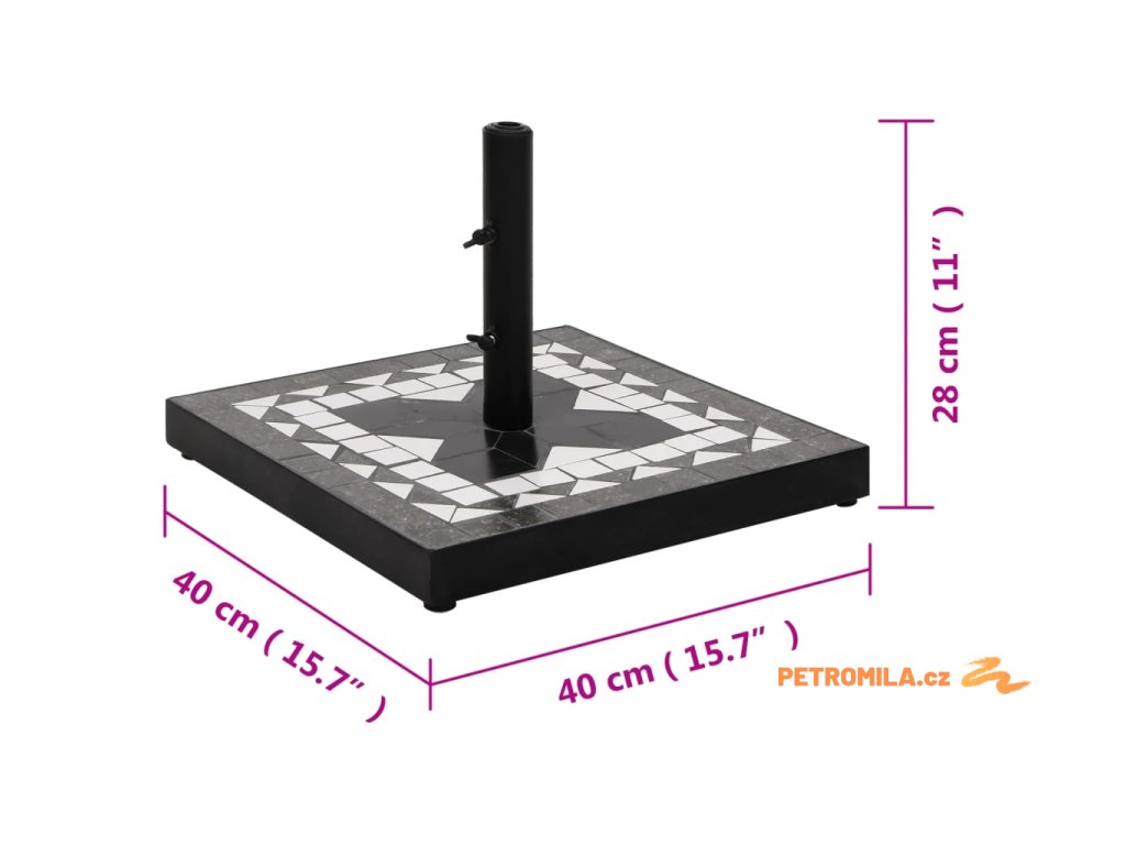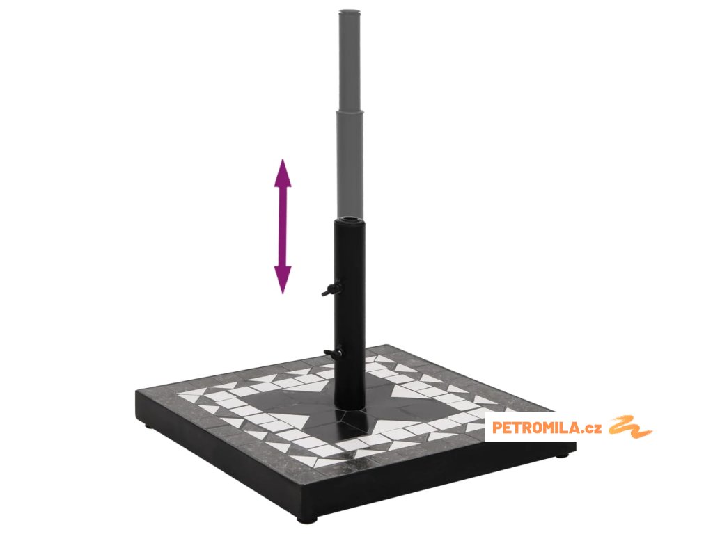 - Praktický povrch: Povrch stojanu na slunečníky je vyroben z keramických dlaždic. Snadno se čistí a udržuje a zároveň přidává zátěž.