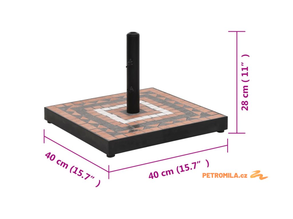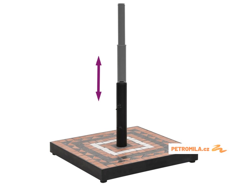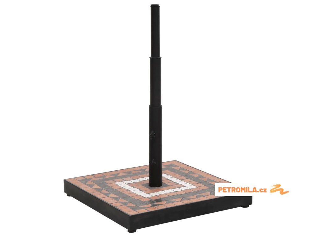 - Praktický povrch: Povrch stojanu na slunečníky je vyroben z keramických dlaždic. Snadno se čistí a udržuje a zároveň přidává zátěž.