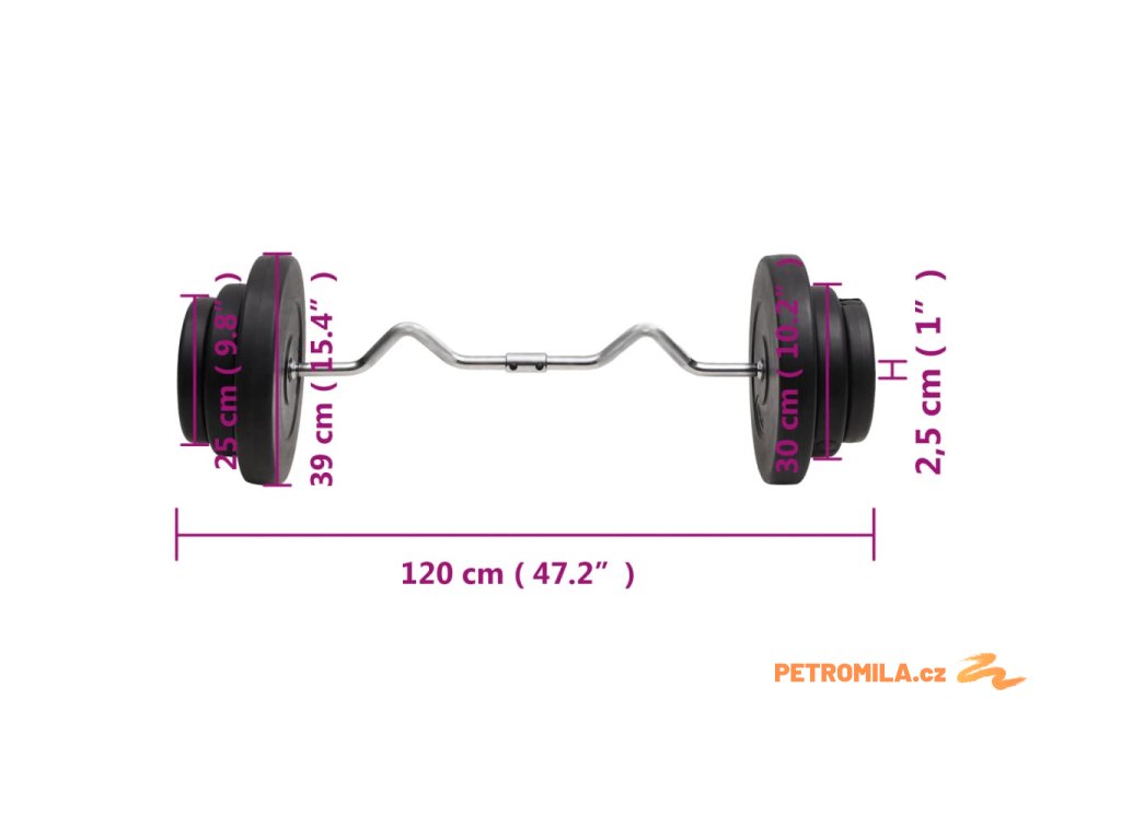 - Hmotnost kotoučů: 2x 5 kg, 2x 7,5 kg, 2x 15 kg