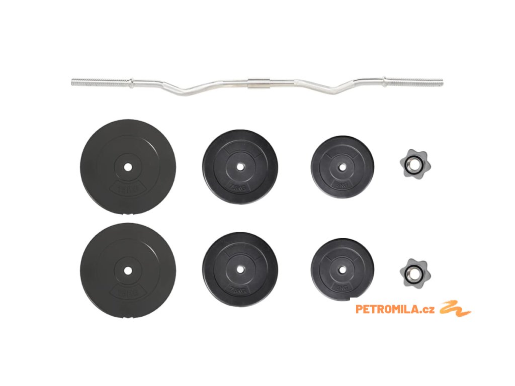 - Hmotnost kotoučů: 2x 5 kg, 2x 7,5 kg, 2x 15 kg