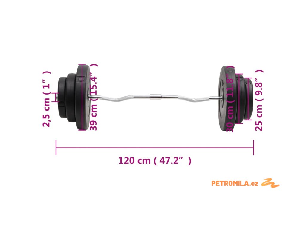 - Rozměry činkové tyče: 25 mm x 120 cm (průměr x D)