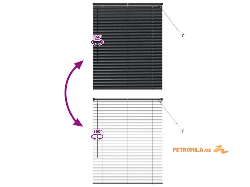 - Typ venetianských žaluzií S horizontálními lamelami můžeš snadno naklánět nebo zvedat, aby sis mohl regulovat světlo. Ty rozhoduješ o atmosféře v místnosti.