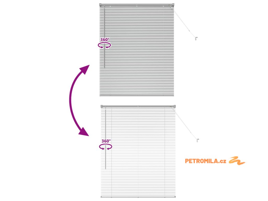 - Typ venetianských žaluzií S horizontálními lamelami můžeš snadno naklánět nebo zvedat, aby sis mohl regulovat světlo. Ty rozhoduješ o atmosféře v místnosti.